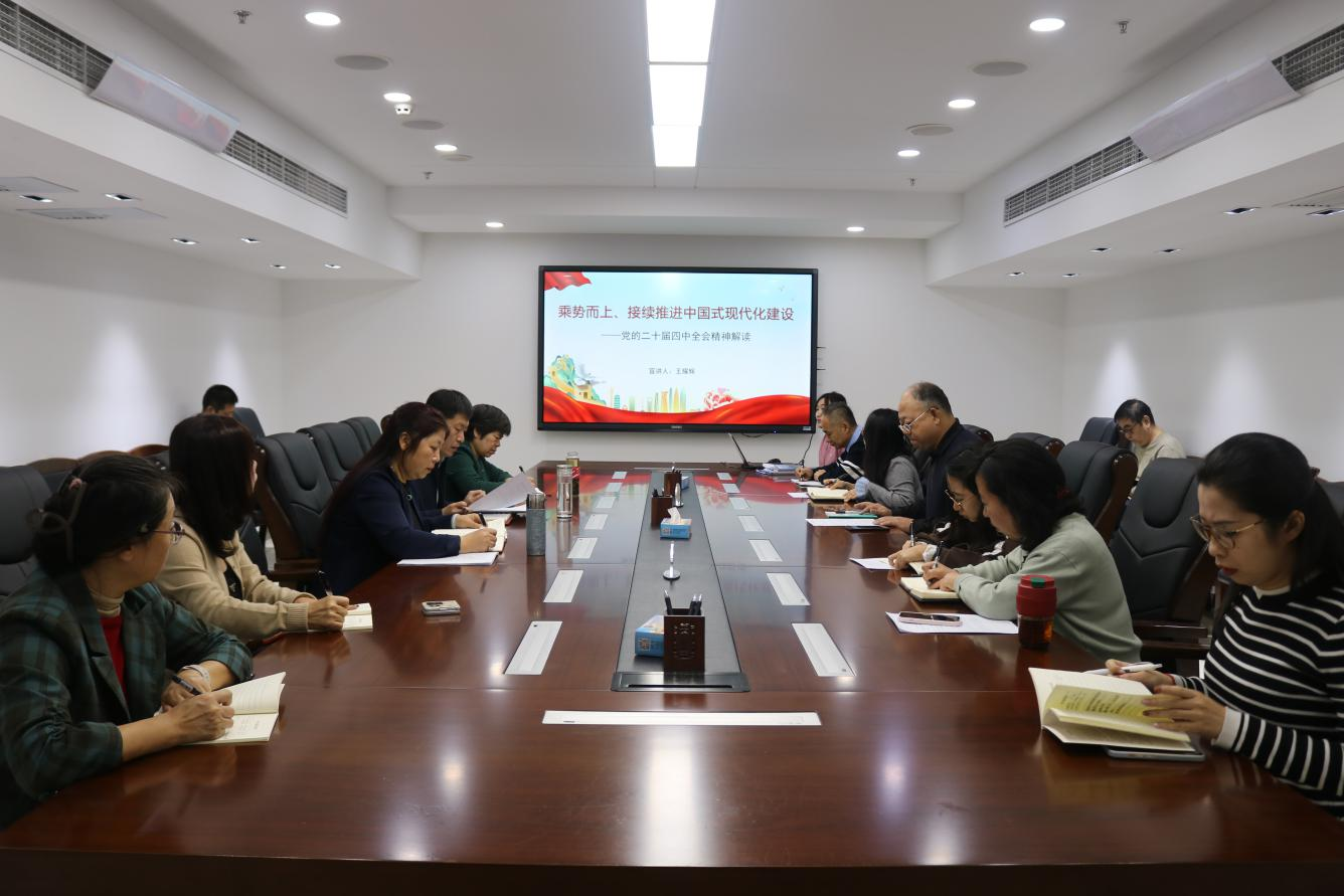 会上,馆主要负责同志围绕习近平总书记在党的二十届四中全会上的重要讲话精神和《中共中央关于制定国民经济和社会发展第十五个五年规划的建议》,从深刻认识全会的重大意义,深刻领会“十五五”时期在基本实现社会主义现代会进程中的重要地位,深刻把握“十五五”时期经济社会发展的指导方针、主要目标、战略任务、重大举措、根本保证等方面,结合我馆工作实际,对全会精神进行深刻诠释和系统解读。