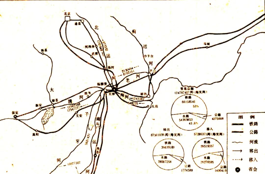 据《天津志》统计,1905年,通过西河(大清河与子牙河在第六埠汇合后,至天津金刚桥一段,统称西河)进出天津的民船多达35621艘,货物运输量高达84.17万吨。
