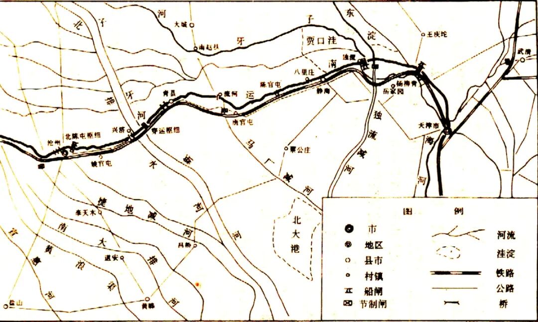 子牙河,位于杨柳青镇北1公里处,发源于山西省太行山区,流经河北省西部,其上游为两大支流,北支为滹(hū)沱河,南支为滏阳河,二河在河北省献县臧桥汇合为子牙河。子牙河在天津市静海区十一堡村与南运河交汇。